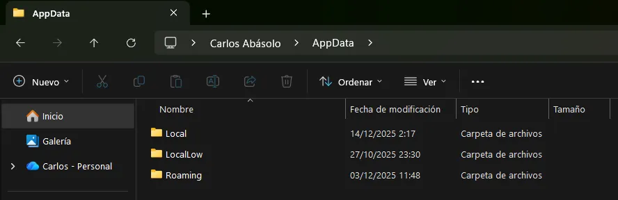 Dossier « AppData » de Windows 11. Photo : capture d’écran de Softzone.
